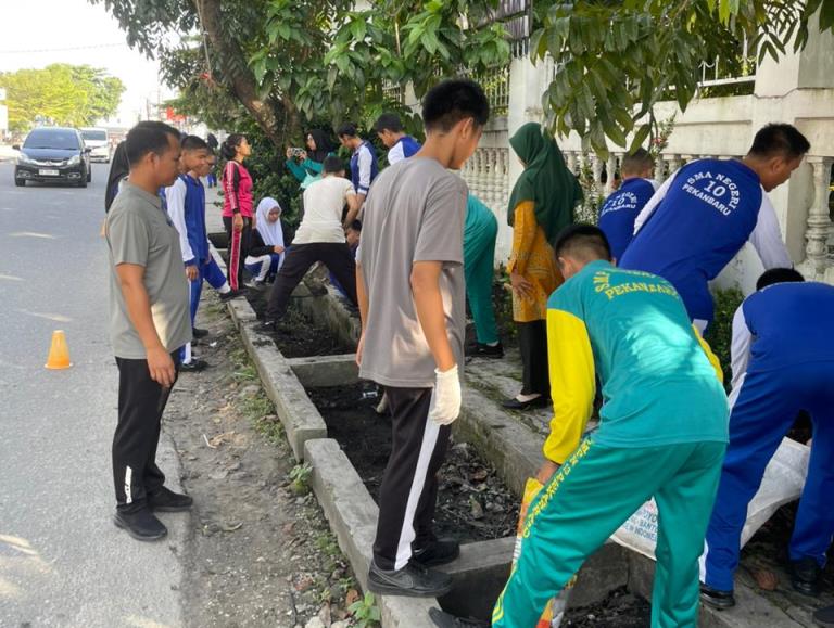 Beri Andil dan Tumbuhkan Rasa Sosial Masyarakat, Siswa SMAN 10 Pekanbaru Gelar Goro Lingkungan