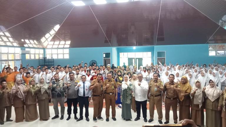 Senyum sumringah seluruh warga sekolah terlihat sejak penyambutan hingga rangkaian acara Sosialisasi Empat Pilar Kebangsaan di selenggarakan di aula sekolah yang terbilang megah tersebut. “Terimakasih saya ucapkan atas sambutan seluruh jajaran sekolah, kehadiran ini disambut suasana keceriaan,” ujar Karmila Sari.