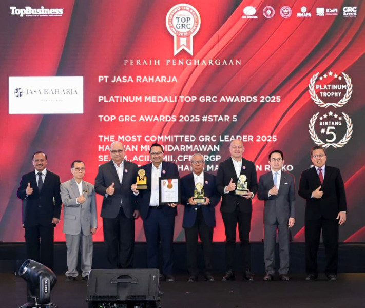 Pada kesempatan ini, Jasa Raharja berhasil meraih Platinum Medali karena telah 7 kali berturut-turut menerima penghargaan 5 Star, serta TOP GRC Awards 2025 #5 Star. Pencapaian ini menunjukkan konsistensi Jasa Raharja dalam menerapkan prinsip tata kelola perusahaan yang baik (Good Corporate Governance/GCG), manajemen risiko, serta kepatuhan, yang mendukung keberlangsungan bisnis sekaligus pelayanan publik secara berkelanjutan.